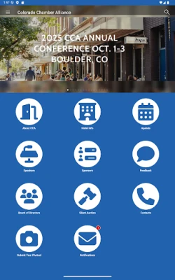 This is the official app for the 2025 Colorado Chamber Alliance Annual Conference in Boulder, Colorado. Use the app to view the agenda, hotel information, speaker lineup, sponsors, and board of directors. Attendees can also participate in the silent auction, submit photos, leave feedback, and stay informed through real-time notifications.