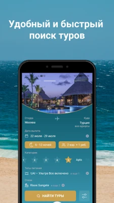 Если вам предстоят путешествия, в этом приложении можно вести поиск по самым изысканным отелям с превосходным сервисом и большим набором дополнительных возможностей для интересного проведения отдыха. Здесь вы найдете горящие туры для отдыха на лучших пляжах мира. Все варианты, которые выдает наш поиск по горящим турам, подразумевают максимальный комфорт и безопасность для туристов.