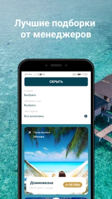 Чтобы предлагать клиентам действительно самые лучшие туры, наши менеджеры много путешествуют, проходят ежеквартальную аттестацию и всеми другими путями повышают свой уровень профессионализма. Поиск туров в приложении будет проходить при их непосредственном участии, так как вы можете в любой момент обратиться за советом к консультанту. В том числе есть возможность обращаться к менеджерам через приложение во время путешествия, что очень удобно.