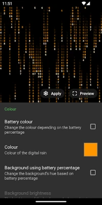 It is highly customizable, including: •Completely custom colours •Custom texts •Battery percentage •Colour using the battery charge •Time display •Custom sizes, speed and spacing •Background colours •Custom amount •and more!
