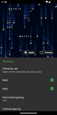 This app allows you to set your phone to display a procedurally generated digital rain (Matrix effect) while charging or docking. No two times will be the same! It uses the "Daydream" feature introduced in Android 4.2.