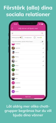 Create an activity you want to do and easily send a notification to your friends. Whether it's a game of padel, babysitting, or a spontaneous coffee break, you can invite as many people as you want. Your friends then reserve their spot. If there's only room for four people on the padel court, no more than four people (including you) can reserve a spot.