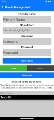 You just need to set a friendly name, IP+Port, username and password. Via the list of inserted controllers, it is possible to select the board to be controlled.