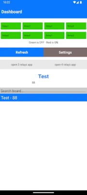 Multiple boards can be added and controlled. The application allows individual relays to be switched on and off and loads automatically the name of any relays set on web interface of board.