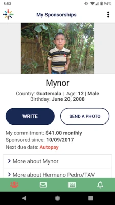 The app also features direct links into our mobile website where you can pay for your sponsorship or make a donation, manage payment accounts, update your profile and more.